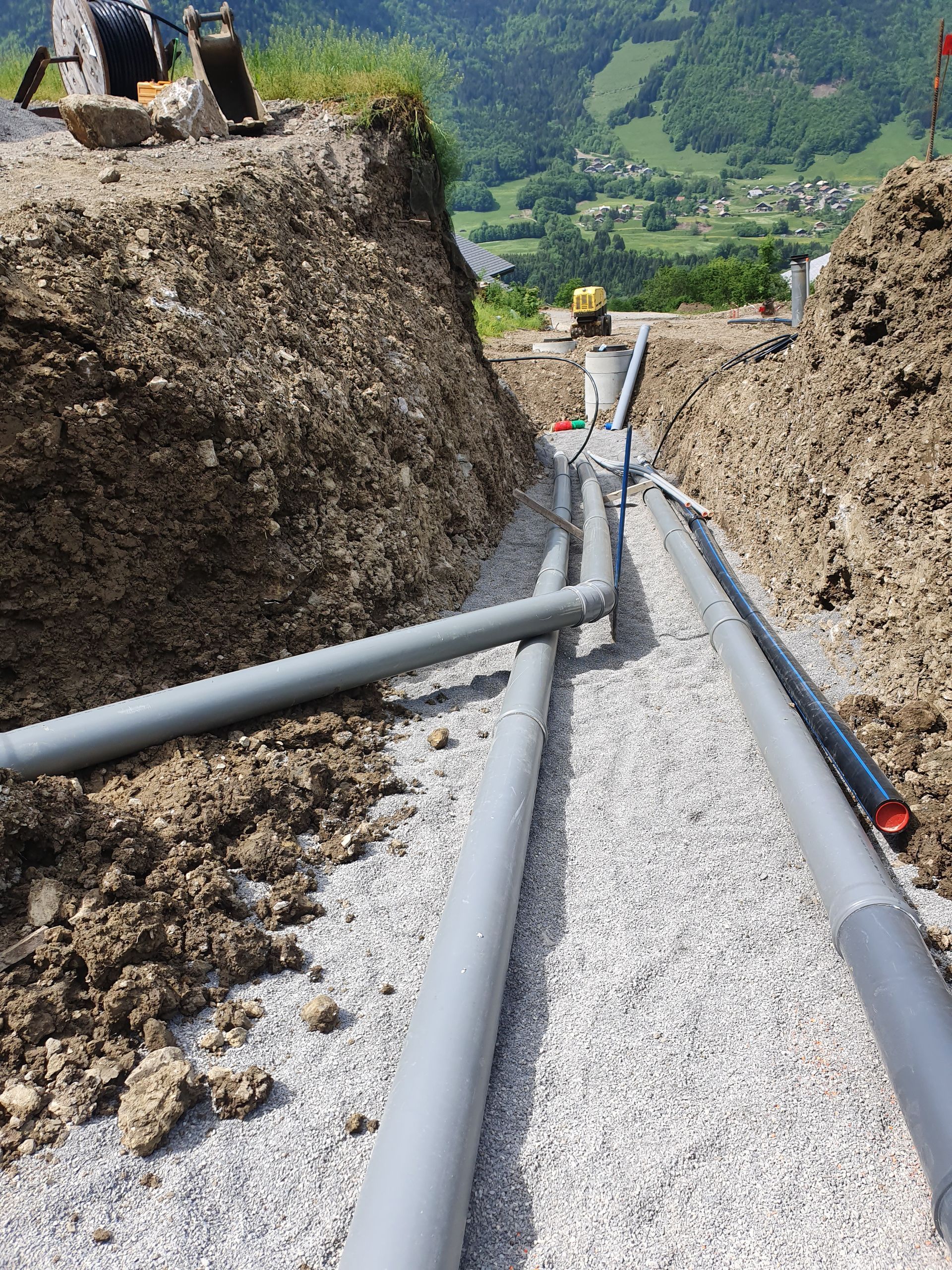 Attention, la pose de réseaux nécessite en général des travaux de terrassement : déblaiement et remblaiement du terrain, aménagement des tranchées, nivellement, drainage de terrain…